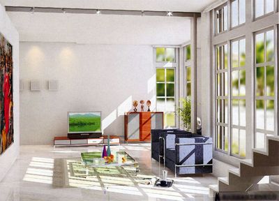 對(duì)于像窗簾、帷幔、壁掛等懸掛的布飾,其面積、色彩、圖案、款式等,要與客廳的空間相匹配,在視覺上要有平衡感。如較大的窗戶,應(yīng)以寬出窗洞、長度接近地面的窗簾來裝飾;小空間內(nèi),要配以圖案細(xì)小的布料,這樣才不會(huì)有失平衡。