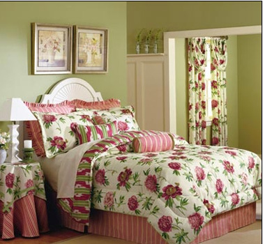 大量使用清新淡雅的顏色、柔美嬌嫩的花朵圖案,是使居室顯得更為浪漫的常用方法,這樣的床上用品多年來一直也是人們家居布置的首選參考方案。