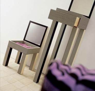為了迎合人們希望盡可能充分利用空間的需要,現(xiàn)在很多浴室家具不僅僅具有一項(xiàng)功能,例如圖中所示的坐椅,表面有可以打開的蓋子,蓋子一面是鏡子,可用于化妝,而椅坐里面還可以放一些零碎物品。高一些的帶抽屜的柜子也是如此。