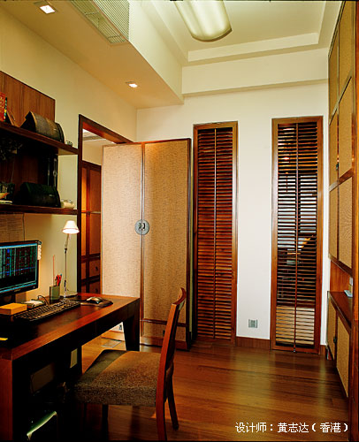 主人房中那盞古樸的燈飾,縈繞于溫暖的織物中,讓空間豁然開朗。簡潔明亮的書房,是主人的最愛,參禪悟道不僅來自內(nèi)心的思索,更來自經(jīng)典的指導(dǎo)與牽引。