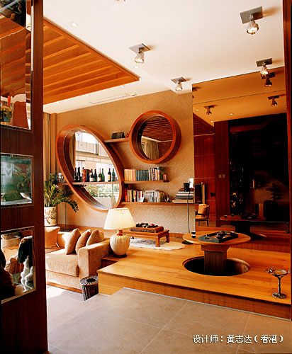 空間設(shè)計多以原木為主,在客廳的木質(zhì)地板上,我們用升縮管的設(shè)計讓地板成為一張圍桌。在放下圍桌時,又成了主人練習(xí)瑜珈的場地。同時,客廳的背景墻也不失浪漫地利用到LED營造出星光點點的氛圍。