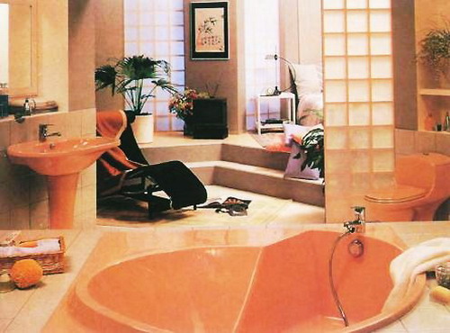 進(jìn)入桑拿房的走廊一側(cè),一排磨砂玻璃打造的淋浴間,依然少不了花葉玻璃墻和低垂紗簾的陪伴。四周的燈光已經(jīng)昏暗了許多,完成了一處私密獨立空間的營造。