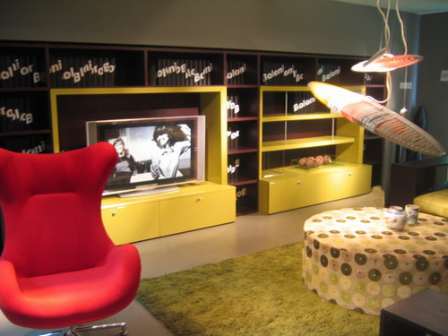 綠色是大自然賦予這個季節(jié)的顏色,家里也同樣適合選用,適當?shù)木G色不僅能夠給居室?guī)砩鷻C和活力,同時也能也能起到很好的視覺調節(jié)作用。本案中,博洛尼設計師在采光欠佳的起居室中加入檸檬黃、大紅和果綠色,將灰暗低沉一掃而空。