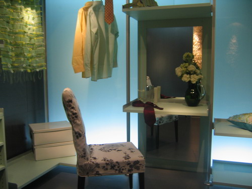 隨天氣轉暖,羽絨服也被時尚春裝取代,衣帽間自然也應換一種表情,果綠和蛋清色成為私秘空間的色彩首選。本案中,博洛尼設計師將梳妝臺鑲嵌在特質玻璃墻中,配以淺綠色的家居配飾,頗具田園般浪漫情調,恬淡與知性氣質悄然蔓延。