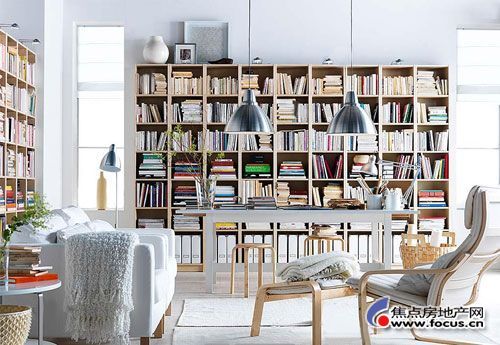 白色的墻壁白色的書柜白色的家具,北歐簡約風中白色被使用極致。