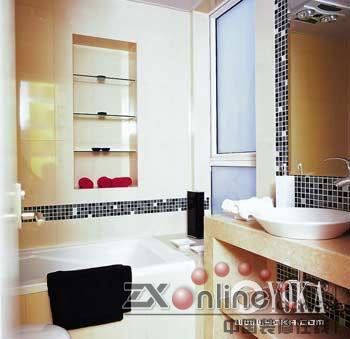 空間不大,也許可以說有點(diǎn)兒局促。但即使在這么個(gè)小小的角落,衛(wèi)浴的主人都沒忘了給環(huán)境打上“格子”。在柔和的主色調(diào)中,粗獷的藍(lán)色瓷磚勾勒出幾道輪廓,整個(gè)空間立刻顯得整齊了很多。另外,黑色的浴巾和紅色的毛巾球在背景色中非常醒目,給人眼前一亮的感覺。衛(wèi)浴的主人不是一個(gè)可以忍受平庸的人,他喜歡通過小心思來創(chuàng)造生活的亮點(diǎn)。不要以為這種亮點(diǎn)僅限于視覺上的小小刺激,在索然無味的生活中,他會(huì)時(shí)不時(shí)創(chuàng)造些小驚喜。