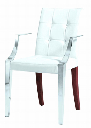 這把座椅雖然帶給人們的整體視覺感受是種脫離塵囂般的純凈高貴,但組成座椅的不同材質(zhì)卻令人在細細品位時得到迥異的心靈觸動--白色真皮烘托出一種嫻靜的高雅,同時不失溫和與親近;銀色金屬渲染出一種低調(diào)的張揚,帶著中性與前衛(wèi)。