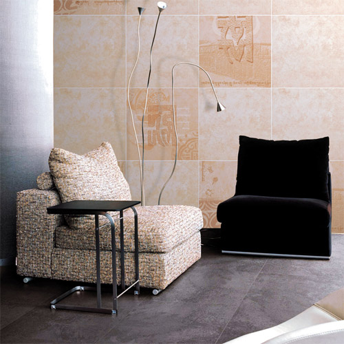 客廳的輪廓以斜插竹桿、磚體屏風劃分,豪華的歐式吊燈與熱情洋溢的“威尼斯春天”系列地磚上下呼應,真皮沙發(fā)套裝,硬木茶幾,墻面是由墻壁上凹凸混鋪的瓷磚和茶色的反光鏡片巧妙的穿插。整個客廳活潑而不炫亂,更顯現(xiàn)代風尚,無論新朋舊友皆可由衷感受到主人的熱情好客與雍容大方