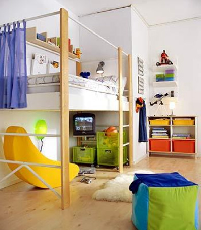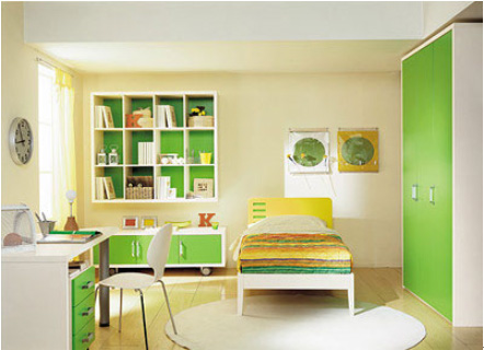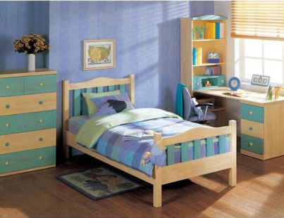 學(xué)齡前的房間中,為保證孩子的身體健康,兒童房中的家具都選用環(huán)保的實木家具,并鋪設(shè)實木地板。因為孩子年齡小,又好動,宜選用低矮的兒童床,以免孩子睡覺時“不老實”而翻下床。