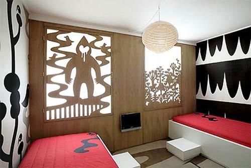聯(lián)想的內(nèi)容都是已知的、客觀存在的,運(yùn)用比擬手法,通過(guò)聯(lián)想使抽象的意識(shí)活動(dòng)與具體形象相結(jié)合。例如臥室,選用紅調(diào)的布藝,再加上茂盛的綠色盆栽、立在窗邊的長(zhǎng)頸鹿擺飾,置身其中難免會(huì)從色彩、布景中產(chǎn)生熱情洋溢、活力四射的非洲印象。