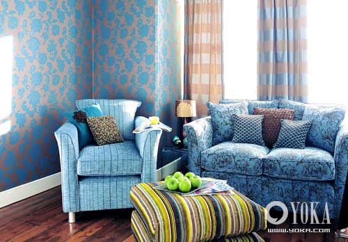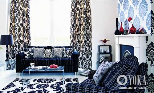 圖案能夠賦予空間生命力和動(dòng)感,其中關(guān)鍵技巧的運(yùn)用在于圖案與同一色系的底色,或者圖案與色彩主調(diào)的協(xié)調(diào),以及圖案比例的變化和靈活運(yùn)用。效果凸顯的圖案需要較大的空間來(lái)搭配。如果你家的空間并非奢侈,還是選擇較為低調(diào)的圖案為好,再輔之以空間色彩的變換,比如墻壁和地板的顏色組合。