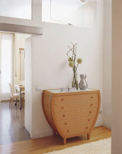 如果陽(yáng)臺(tái)與廚房相連,那么最好是在陽(yáng)臺(tái)的畸角位置,設(shè)置一個(gè)儲(chǔ)物柜用于存放沒(méi)吃完的蔬菜瓜果或不常用的物品等。另外,還可以把陽(yáng)臺(tái)改造成家里的第三洗理區(qū)。所謂第三洗理區(qū)是針對(duì)已有的衛(wèi)生間和廚房?jī)纱笈c洗滌有關(guān)的空間而言,我們可以按照家庭中的特殊洗滌需要,把清洗抹布、淘洗墩布、晾曬衣物等家務(wù)移置陽(yáng)臺(tái)進(jìn)行。這樣一來(lái),即使衛(wèi)生間與廚房面積偏小,但為了達(dá)到日常保潔的需要,也不必在擁擠的廚房里放一個(gè)與設(shè)計(jì)風(fēng)格不和諧的洗抹布盆了。