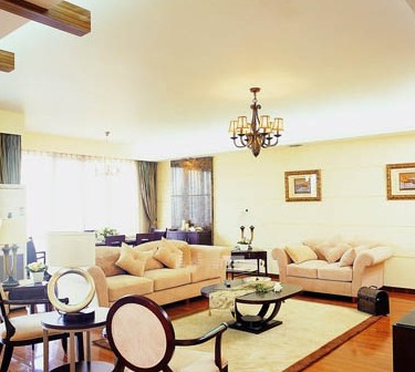 古典與現(xiàn)代看似風(fēng)馬牛不相及的兩種設(shè)計(jì)風(fēng)格,在此方案中融合在一起,和諧而不突兀。能夠產(chǎn)生這種效果是因?yàn)樵O(shè)計(jì)者將兩者進(jìn)行互補(bǔ)。古典的幽雅在電視機(jī)后面的那一輪紅木墻壁體現(xiàn)出來。現(xiàn)代的簡約則用于沙發(fā) 、窗簾等的選擇上。色彩上,深棕色厚重感與米色的輕柔感形成對比,和諧一致。地上鋪滿鵝卵石、瓶上插著鮮花、柜內(nèi)的瓷器,小至每一個家飾品的搭配也體現(xiàn)設(shè)計(jì)師的心思。