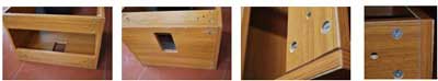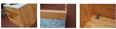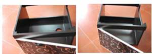 二看產(chǎn)品結(jié)構(gòu):高檔浴室柜使用橡木板打木屑,再加打釘拼裝,具結(jié)構(gòu)牢固,使用壽命長(zhǎng)的特點(diǎn),但生產(chǎn)效率稍低。假冒產(chǎn)品則是使用中纖板或刨花板,排鉆封邊拆裝方式生產(chǎn),生產(chǎn)效率較高,但結(jié)構(gòu)不牢固,質(zhì)量差,使用壽命短,封邊容易出現(xiàn)開離現(xiàn)象。