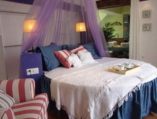 希臘的白色村莊與沙灘、碧海、藍(lán)天連成一片,甚至門框、窗戶、椅面都是藍(lán)與白的配色,加上混著貝殼、細(xì)沙的墻面,小鵝卵石地,拼貼馬賽克、金銀鐵的金屬器皿,將藍(lán)與白不同程度的對(duì)比與組合發(fā)揮到極致。這些地區(qū)的國(guó)家大多數(shù)信仰伊斯蘭教,而伊斯蘭教的主色調(diào)為藍(lán)白兩色。
