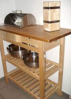 小推車的設計可以擱放一些廚具和餐具,滑動的轱轆設計使用非常方便。