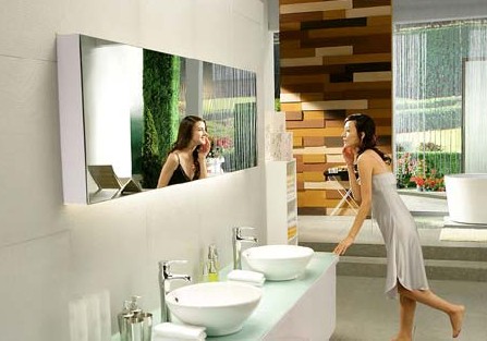 在鏡面上安裝壁燈照明效果比較好。在洗臉盆的附近上方,還可以安上可插式電插座,供吹風機、刮須器器具使用,要注意的是插座上應有防水蓋板。