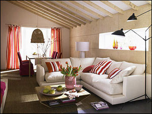 但經(jīng)過裝飾,我們發(fā)現(xiàn)其實這樣的房型也蠻可愛的。空間私密,很適合兩口之家。為了將尖頂臥室調(diào)亮光線,我們將墻壁刷成大面積的粉紅色,床單靠枕都換成大紅色,屋內(nèi)的氣氛頓時變得溫馨起來。由于天窗通風(fēng)效果好,我們利用這個優(yōu)點,在衣柜上索性采取了無門設(shè)計,以布簾替代,拿取衣服方便,也讓臥室顯得輕巧許多。房頂中央吊上一盞梭形紙燈,柔和的光線很適合臥室的曖昧情調(diào)。至于尖角落,我們利用那丁點空間做出一排暖氣片,位置高度恰到好處。能直接烘曬我們的小衣服,美觀又實用。天窗雖小,但裝上百葉窗后,顯得精致了許多。總體感覺,不規(guī)則的臥室,裝飾比規(guī)矩的臥室更簡單,而且容易展現(xiàn)小情調(diào)。