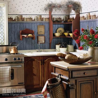 一般來(lái)說(shuō),鄉(xiāng)村風(fēng)情的廚房中墻面仍然以瓷磚為主,不過(guò)可以選擇一些花紋突出的方磚來(lái)體現(xiàn)鄉(xiāng)土氣息,另外地磚也要走仿古路線,時(shí)下非常流行的仿古方磚就是不錯(cuò)的選擇,這種磚以西班牙和意大利瓷磚為代表。當(dāng)然最簡(jiǎn)單的方式也可以只是刷上油漆,感覺(jué)上更純粹。