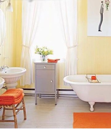 由于8平方米的浴室已經(jīng)比較寬敞了,所以可容納一些簡單的小家具。拿一把椅子放在浴缸旁邊,可以放浴巾,可以掛衣服,可以堆雜志,也可以讓親愛的那位坐著為你按摩。椅子要防水,木的藤的都可以考慮,適合浴室里用的椅子最好沒有扶手,簡約、輕便、方便移動。