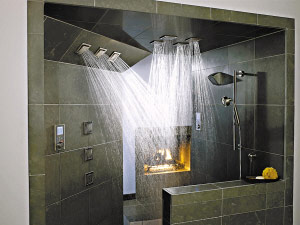 水魔方花灑:充分吸納了建筑學(xué)的空間概念,花灑可因地制宜地安裝于天花板或傾斜的墻面上,顛覆了傳統(tǒng)花灑及噴頭的設(shè)計(jì),你還可以在淋浴區(qū)內(nèi)任意方位任意角度安裝任意數(shù)量的花灑。水流可均勻充沛地覆蓋花灑表面,勾勒出圓潤流暢曲線,讓人猶如置身天然飛瀑之中。如果搭配科勒最新的DTV智能恒溫淋浴系統(tǒng),在家里就可以享受水療以及音樂、幻彩燈光理療功能。