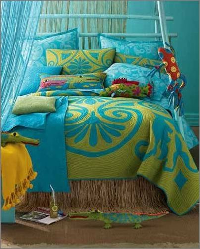 搭配手法:在臥室內(nèi)大膽啟用金色和深紅色的組合,卷草紋腳柱的床頭邊幾,太陽造型的裝飾鏡,窗幔上的蕾絲,讓初秋的臥室看起來如同巴洛克時(shí)期的宮殿一樣富麗堂皇。