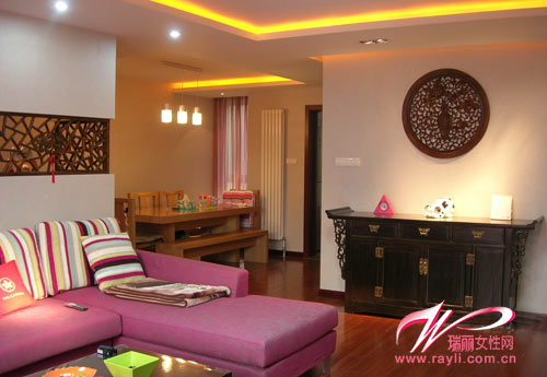 客廳里,女主人特別挑選了粉紅色的沙發(fā),配以同色調(diào)彩條靠包,她說(shuō),那是春韻的寫意畫片,在跳躍艷麗的粉暈中,春天永遠(yuǎn)伴在家人的身邊,那樣輕盈,那樣?jì)趁摹?/P>