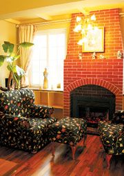 設(shè)計(jì)師在主臥中營建了一個(gè)小的休閑區(qū)域,并將光線分為雙向采光和直線采光,中間則為功能結(jié)構(gòu)——壁爐,業(yè)主最喜歡的水彩畫便懸掛于其上。東易日盛裝飾設(shè)計(jì)師稱,兩邊的光線與植物、飾品、掛畫等交織在一起,形成一種自然和諧的空間氛圍。壁爐前是沙發(fā)區(qū),花形的吊燈,樸實(shí)的紅磚壁爐將人和環(huán)境有機(jī)的結(jié)合在一起。在主臥的一角,騰出了一塊書房的空間,滿足了主人在家臨時(shí)工作及書寫的功能需求。圓拱形的埡口設(shè)計(jì),自然、樸實(shí),與對面的壁爐遙相呼應(yīng)。