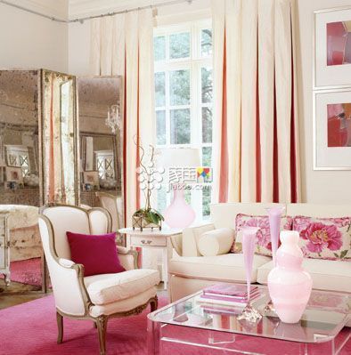 玫粉色能營(yíng)造出非小女生的臥室情調(diào),這間臥室就是一個(gè)很有說(shuō)服力的典型。香艷的玫粉色采用了深淺搭配原則,讓臥室層次分明,奶白色的家具和床品顯得出奇地穩(wěn)重成熟,與玫粉色的完美搭配,柔和了臥室的主調(diào)。梳妝臺(tái)上的后現(xiàn)代藝術(shù)作品以及樣式有趣的窗簾也相應(yīng)地調(diào)成了粉紅色,恰當(dāng)?shù)纳顪\過(guò)度,為臥室披上了香艷的外衣。