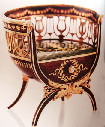 07年4月紐約索斯比(Sotheby´´s)拍賣會上,一把只有手掌大小的微型椅子,飆到了150萬美元,最便宜的一把也要100萬美元,居然還有人捧場。想當年靠為沙皇亞歷山大三世設(shè)計復活節(jié)彩蛋一舉成名的Faberge聽到這個價格,不知道會不會在墳?zāi)估镄π选?