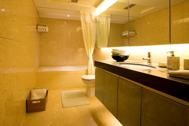 臥室依然大面積采用淺色調(diào),濃咖啡色的床頭柜和濃咖啡色的床,恰到好處的避免了臥室色彩的輕重失調(diào)。大面的鏡子在視覺上大大增加了臥室的空間。床頭柜上Harbor House白貝母相框和座鐘,滲出一點高雅與脫俗。床頭燈柔和的燈光又能讓臥室不失溫馨與親切。