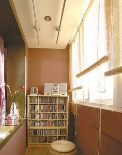 陽臺頂部可沿用中國傳統(tǒng)建筑中“吊梁”的工藝手法,做出兩道紅櫸木的“假梁”。而墻壁采用外墻花磚,地面則是色彩樸素的西班牙地磚。在鐵藝暖氣罩的上方墻面上,特別采用了“板巖”做裝飾。這樣內(nèi)外結(jié)合、深淺有致的設(shè)計(jì),使整個陽臺的氣氛與眾不同。