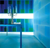 上個(gè)世紀(jì)60年代風(fēng)行美國(guó)的波普藝術(shù)是大眾文化與商業(yè)美術(shù)風(fēng)格中最具影響力的藝術(shù)流派。就詞義而言,波普就是大眾、流行的意思,它以流行的商業(yè)文化形象和都市生活中的日常事物為題材,采用的創(chuàng)作手法也往往反映出工業(yè)化和商業(yè)化的時(shí)代特征。Werner Berges設(shè)計(jì)的“藝術(shù)邊緣2005”壁紙就顯示了純正的波普藝術(shù)。畫面是一個(gè)笑得夸張而奔放的時(shí)尚女郎,以剪影的手法將頭像處理得簡(jiǎn)單明了,在色調(diào)上或以濃度較高的紅、白、黑為主,或以明亮的藍(lán)、白、黃為主,帶有強(qiáng)烈的波普風(fēng)格和視覺(jué)沖擊力。這些壁紙本來(lái)都是用作戶外展示背景的,但因?yàn)閳D案很有個(gè)性,很多時(shí)尚人士會(huì)選擇用到室內(nèi)背景墻。