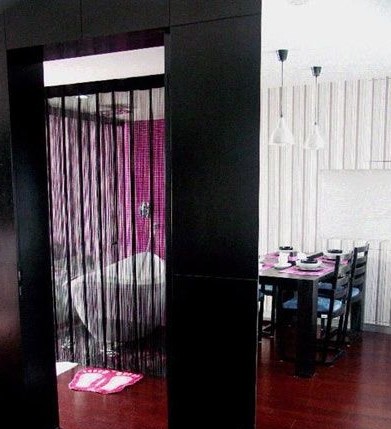隔斷簾也是家庭裝修中用來處理隔斷的常見手法之一。在家庭裝修中,采用隔斷簾的好處是,一、透光性比較好,二、比較輕盈,不占面積。從吳老師家實(shí)際情況來看,使用個(gè)隔斷簾,不僅能滿足吳老師對于采光的要求,又能適應(yīng)吳老師家陽臺進(jìn)門空間小的不足。