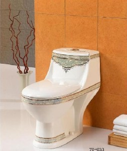 ?。?)將座便器出水管口對(duì)準(zhǔn)下水管口,放平找正,在座便器螺栓孔眼處畫(huà)好印記,移開(kāi)座便器。