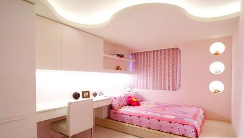還在讀幼兒園的小女孩的房間利用線條顏色勾勒出小女生活潑的感覺(jué),用曲線圓形來(lái)突顯兒童的趣味性,窗戶的設(shè)計(jì)也以弧度的轉(zhuǎn)角來(lái)修飾。
