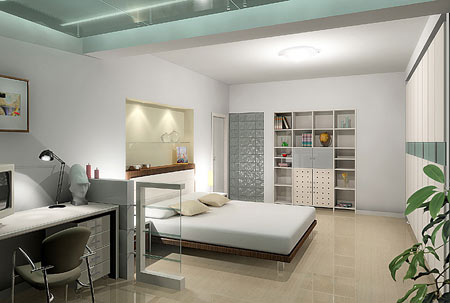走進(jìn)臥室,先“敲敲打打”,主要是察看地面、墻面是否有空鼓及剝落現(xiàn)象,然后“四處觀望”,察看居室是否有各種管線外露、是否有暖氣回水或其他管線穿過,因?yàn)橛休^多管線穿越居室,會造成裝修困難和視覺上的障礙。