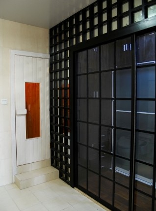木制移門,最好把移門、導(dǎo)軌設(shè)計(jì)在衛(wèi)浴間外面,不易濺到水,使用壽命比放在里面長(zhǎng)。