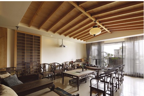 其中運(yùn)用竹簾拉門、隔屏所圍塑的客廳一隅,以姿態(tài)古雅厚實(shí)的羅漢床為主題,規(guī)劃為舒適宜人的休閒區(qū),透過室內(nèi)半穿透元素的巧妙運(yùn)用,有效延伸了視覺的轉(zhuǎn)折。