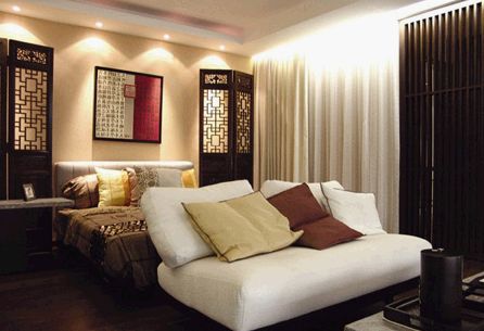 臥室的設(shè)計(jì)與家具配置最注重私密與舒適,在選配家具時(shí)要考慮居室墻面的顏色。墻面淡色調(diào)、家具可選用淡黃、白色,如家具顏色深,就不能用深灰的墻色,不然房間就沒(méi)有精神了。新婚的房間,臥室顏色可以偏暖,增加歡樂(lè)的氣氛,但不宜太艷。較小而缺少深度的房間,倘若掛上一幅有深度的風(fēng)景畫(huà),或者裝上一面鏡子,即可造成一定的深度感。