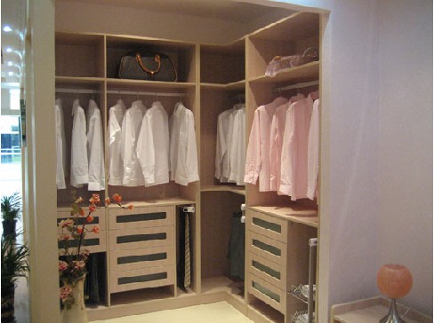 除了側(cè)板和背板,整個(gè)柜體都用18mm的板材,靠墻的承重板采用25mm的厚板,防止衣柜變形。