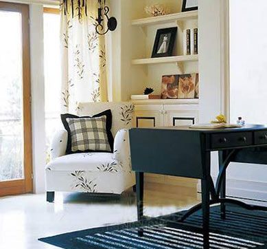 2、色彩法:色彩是一種有明顯效果的裝飾手段,不同的色彩賦予人不同的距離、溫度和重量感。比如紅、黃、橙等暖色,給人一種凸起的感覺;而藍(lán)、青、綠等冷色,則給人一種景物后退的感覺。實(shí)際上,距離并沒有變,只是色彩給人們的眼睛造成了一種錯(cuò)覺。利用色彩的這個(gè)特點(diǎn),比較小的房間就應(yīng)該用亮度高的淡色作為主要色調(diào),比如淡藍(lán)或淺綠等。這樣的色彩使空間顯得開闊、明快。另外,地可以使用中性的淺冷色來改變窄小空間的緊迫感。如果房間不但小而且低矮,那就應(yīng)該用遠(yuǎn)感色,即把天花板和墻面涂成同一淺冷色,這同樣能取得空間開闊的效果。如果是長方形的房間,相距比較近的兩面墻壁,一面涂以白色或其它淡顏色,另一面涂以深于前者的同種色調(diào)。這樣深、淺色調(diào)的對(duì)比,可以產(chǎn)生拉長兩墻之間距離的效果。另外,沙發(fā)套、床單、桌布等如果選用與墻壁顏色相同或相似的顏色,這種單調(diào)的配色也能使室內(nèi)空間產(chǎn)生沿各個(gè)方面擴(kuò)大的視覺。