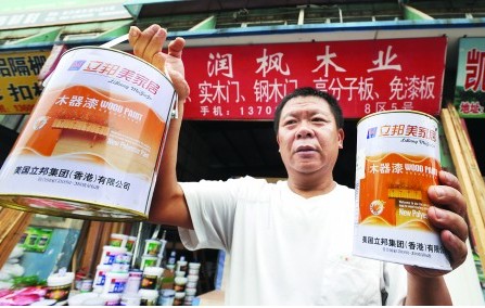在魏志國(guó)的店鋪里,一位自稱姓魏的“立邦美家居”廠家銷售人員稱,“自己只是負(fù)責(zé)推銷這種油漆,對(duì)于其他的情況,都不太清楚。”魏某向記者透漏,“廠家在江蘇廣德?!碑?dāng)記者追問(wèn)廠家的具體名稱時(shí),魏某沒(méi)有回答,只稱廠家只是一個(gè)鄉(xiāng)鎮(zhèn)的合資企業(yè)。