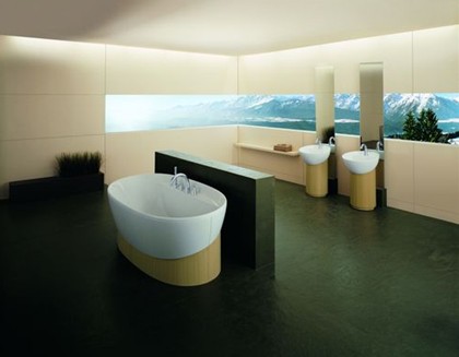 類似于對(duì)圓形的高度依賴,白色也是目前座便器或者說衛(wèi)浴市場(chǎng)上的絕對(duì)主角。不論走進(jìn)哪一個(gè)衛(wèi)浴品牌的專賣店,除了浴室柜外,幾乎清一色都是雪白、米白。不過,一些廠商也先后嘗試過或者正在嘗試挑戰(zhàn)這一傳統(tǒng),挑戰(zhàn)的方式可以歸納為兩種。