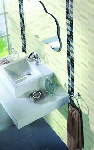 使用腰線來(lái)增強(qiáng)觀賞性,可根據(jù)整體的搭配效果選擇橫排和豎排的腰線,腰線的圖案和磁磚的顏色要協(xié)調(diào),一般來(lái)說(shuō),在衛(wèi)生間里的腰線和磁磚都以素雅圖案為佳。