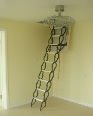 折疊樓梯、拉伸樓梯的占地面積比旋轉(zhuǎn)樓梯還要少很多,但只是屬于臨時用梯。折疊樓梯一般由兩、三段小樓梯組成,不用時可以折疊收起,長度只是原有樓梯的1/3,不用時能完全收納在上層,不會占用下層空間;而伸拉樓梯與它相似,每個踏步都可以收起來,受氣候比折疊樓梯還要省空間。就像一個彈簧,用時拉下來,不用時向上一推就行了。這兩種樓梯適合空間小、東西多,只有一個儲藏式閣樓的家使用。