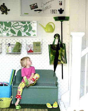 2、這是個(專門存放濕衣物或沾泥衣物的)沾泥物品寄存室,一個灰綠色的長椅與這個空間中其他元素一起創(chuàng)造出令人愉悅的清新感覺。