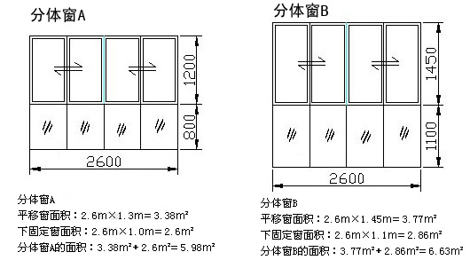 分體窗面積=平移窗面積+下固定窗面積