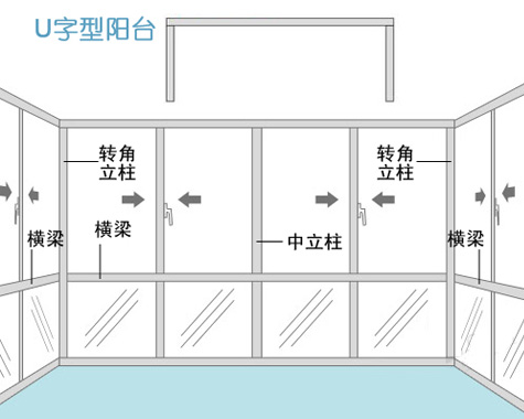 ?。ǘ鄶?shù)U字型陽臺窗有1根中立柱、3根橫梁、2根轉(zhuǎn)角立柱。)
