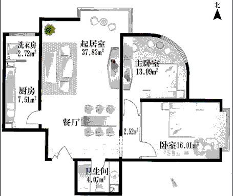 4、正北方處于絕命位,但是用于起居室,影響不算很好。